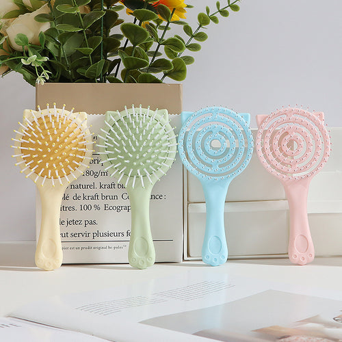 かわいい猫の形をしたクッションコーム、キャンディーカラーの妖精のような、子供用のマッサージミラーコーム、ポータブルな中空コーム。